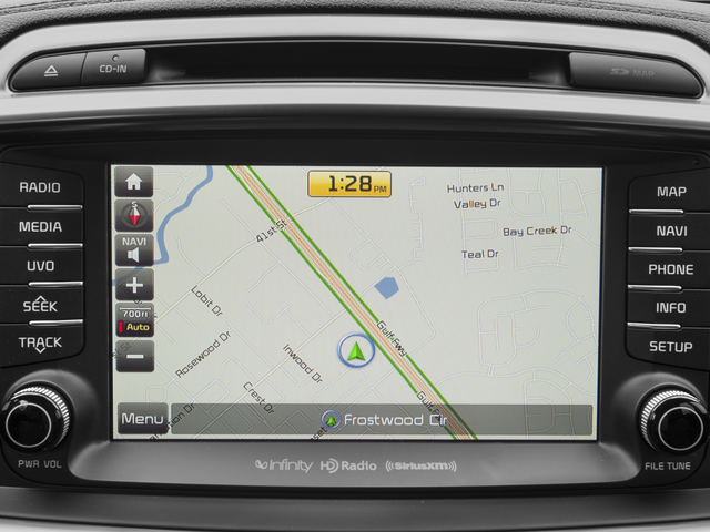 - Radio: UVO eServices with Premium Navigation -inc: AM/FM stereo, CD/MP3 player, SiriusXM satellite radio, Infinity surround sound audio, Bluetooth® control w/voice recognition and USB/auxiliary audio input jacks