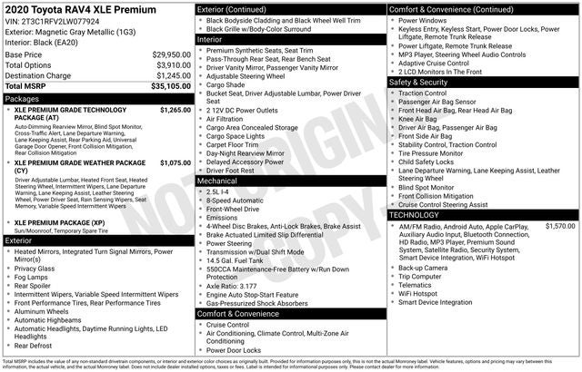 Magnetic Gray Metallic 2020 Toyota RAV4 XLE Premium 2.5L 4-Cylinder DOHC Dual VVT-i CARFAX One-Owner. 28/35 City/Highway MPG