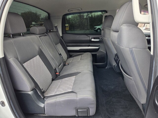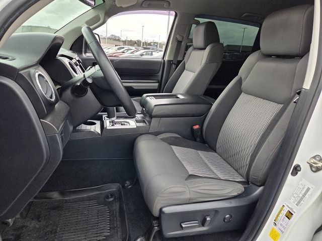 Tundra SR5, 4D CrewMax, i-Force 5.7L V8 DOHC 32V LEV, 6-Speed Automatic Electronic with Overdrive, RWD, Graphite Leather, 18 x 8J Styled Steel Wheels, 3-Passenger Front Bench Seat, 4-Wheel Disc Brakes, 9 Speakers, ABS brakes, Air Conditioning, AM/FM radio: SiriusXM, Apple CarPlay/Android Auto, Auto High-beam Headlights, Auto-dimming Rear-View mirror, Brake assist, Compass, Delay-off headlights, Driver door bin, Driver vanity mirror, Dual front impact airbags, Dual front side impact airbags, Electrochromic Rear-View Mirror, Electronic Stability Control, Emergency communication system: Safety Connect with 1-year trial, Exterior Parking Camera Rear, Fabric Seat Trim, Front anti-roll bar, Front Bucket Seats, Front Center Armrest w/Storage, Front fog lights, Front reading lights, Front wheel independent suspension, Fully automatic headlights, Garage door transmitter: HomeLink, Heated door mirrors, HomeLink Universal Transceiver, Illuminated entry, Knee airbag, Leather Seat Trim, Low tire pressure warning, Occupant sensing airbag, Outside temperature display, Overhead airbag, Overhead console, Panic alarm, Passenger door bin, Passenger vanity mirror, Power door mirrors, Power steering, Power windows, Radio data system, Radio: Audio Plus AM/FM/HD Radio, Radio: Premium Audio & Dynamic Navigation, Rear reading lights, Rear seat center armrest, Rear step bumper, Rear window defroster, Remote Connect, Remote keyless entry, Safety Connect, Service Connect, SiriusXM Radio, Speed control, Speed-sensing steering, Split folding rear seat, Steering wheel mounted audio controls, Tachometer, Tilt steering wheel, Traction control, Trip computer, Variably intermittent wipers, Voltmeter.