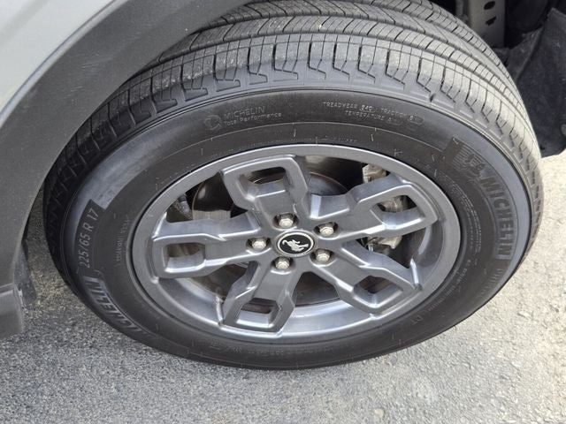 Bronco Sport Big Bend, 4D Sport Utility, 1.5L EcoBoost, 8-Speed Automatic, 4WD, Silver Metallic, Ebony Cloth, 4-Wheel Disc Brakes, 4G LTE Wi-Fi Hotspot Credit, 6 Speakers, ABS brakes, Air Conditioning, Alloy wheels, AM/FM radio: SiriusXM, AM/FM Stereo, Auto High-beam Headlights, Automatic temperature control, Brake assist, Compass, Convenience Package, Delay-off headlights, Driver door bin, Driver vanity mirror, Dual front impact airbags, Dual front side impact airbags, Electronic Stability Control, Emergency communication system: SYNC 3 911 Assist, Equipment Group 200A, Four wheel independent suspension, Front anti-roll bar, Front Bucket Seats, Front Center Armrest, Front Driver & Passenger Seatback Zipper Pockets, Front reading lights, Fully automatic headlights, Heated door mirrors, Heated Front Bucket Seats, Illuminated entry, Intelligent Access (Lock/Unlock), Knee airbag, Leather-Wrapped Steering Wheel, LED Fog Lamps, Low tire pressure warning, Occupant sensing airbag, Outside temperature display, Overhead airbag, Overhead console, Panic alarm, Passenger door bin, Passenger vanity mirror, Power door mirrors, Power steering, Power windows, Radio data system, Rear anti-roll bar, Rear Parking Sensors, Rear reading lights, Rear seat center armrest, Rear window defroster, Rear window wiper, Remote keyless entry, Roof rack: rails only, Rubberized Second Row Seat Backs, Security system, SiriusXM Radio, Speed control, Speed-sensing steering, Speed-Sensitive Wipers, Split folding rear seat, Steering wheel mounted audio controls, SYNC 3 Communications & Entertainment System, SYNC 3/Apple CarPlay/Android Auto, Tachometer, Telescoping steering wheel, Tilt steering wheel, Traction control, Trip computer, Unique Cloth Front Bucket Seats, Universal Garage Door Opener (UGDO), Variably intermittent wipers, Wheels: 17 Carbonized Gray-Painted Aluminum, Wireless Charging Pad.