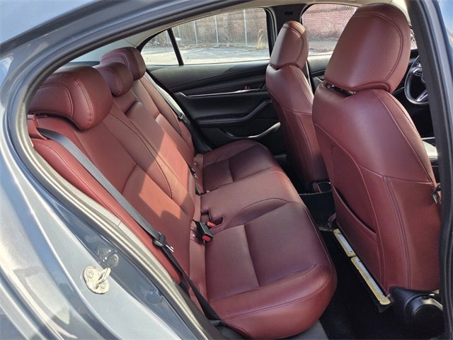 Mazda3 2.5 S Carbon Edition, 4D Sedan, 2.5L I4 DOHC 16V LEV3-SULEV30 191hp, 6-Speed Automatic, AWD, Polymetal Gray Metallic, Red Leather, 4-Wheel Disc Brakes, 8 Speakers, ABS brakes, Air Conditioning, Alloy wheels, AM/FM radio, Auto High-beam Headlights, Automatic temperature control, Brake assist, Bumpers: body-color, Compass, Delay-off headlights, Driver door bin, Driver vanity mirror, Dual front impact airbags, Dual front side impact airbags, Electronic Stability Control, Emergency communication system: Mazda Connected Services (3-year complimentary trial included), Exterior Parking Camera Rear, Front anti-roll bar, Front Bucket Seats, Front Center Armrest, Front dual zone A/C, Front reading lights, Front wheel independent suspension, Fully automatic headlights, Heated door mirrors, Heated front seats, Heated Front Sport Bucket Seats, Illuminated entry, Knee airbag, Leather Seat Trim, Leather Shift Knob, Leather steering wheel, Low tire pressure warning, MAZDA CONNECT Infotainment System, Mazda Navigation System, Memory seat, Occupant sensing airbag, Outside temperature display, Overhead airbag, Overhead console, Panic alarm, Passenger door bin, Passenger vanity mirror, Power door mirrors, Power driver seat, Power moonroof, Power steering, Power windows, Radio data system, Radio: AM/FM/HD Audio System, Rain sensing wipers, Rear seat center armrest, Rear side impact airbag, Rear window defroster, Remote keyless entry, Speed control, Speed-sensing steering, Split folding rear seat, Steering wheel mounted audio controls, Tachometer, Telescoping steering wheel, Tilt steering wheel, Traction control, Trip computer, Turn signal indicator mirrors, Variably intermittent wipers, Wheels: 18 x 7J Aluminum Alloy.