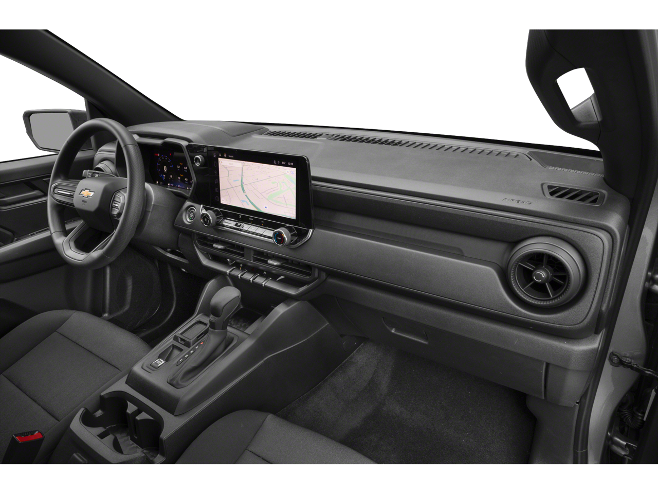 The exterior of the Colorado Work Truck exudes a bold and confident presence, with its sleek Black finish and rugged design elements. Step inside, and you'll be greeted by a well-appointed interior, featuring a spacious cabin and a wealth of advanced technology, including a 11.3 Diagonal Advanced Color LCD Display, 6-Speaker Audio System, and Wireless Phone Projection.